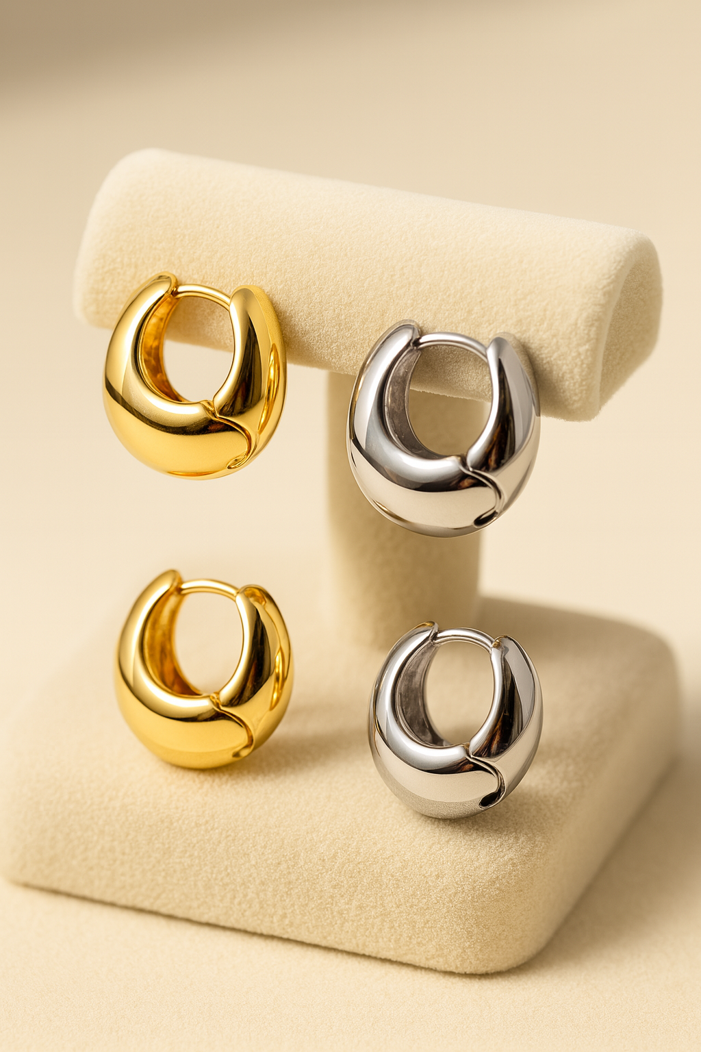 Orecchini in acciaio inossidabile. Che tu voglia un look elegante per una serata speciale o un tocco di stile per il tuo giorno normale, gli Orecchini Belly Gold sono perfetti. Con un design senza tempo e un comfort che non ha paragoni, sono il dettaglio che fa la differenza nel tuo outfit. Perché non aggiungerli al tuo guardaroba e fare brillare ogni tuo momento?