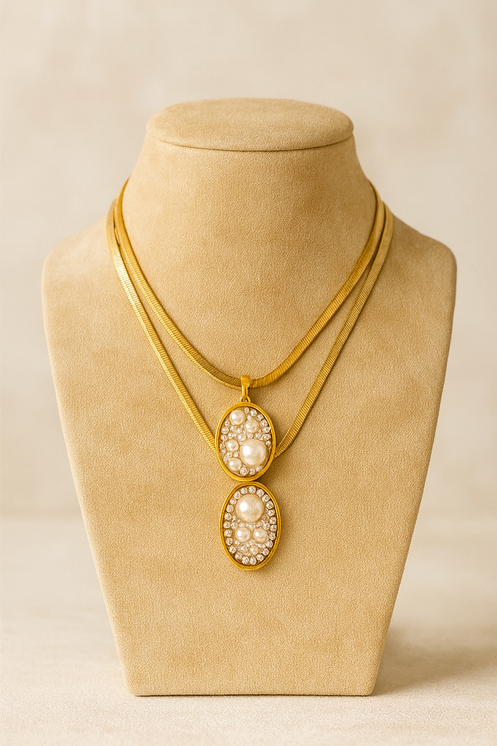 Ciondolo in acciaio inossidabile realizzato a mano di perle, perfette per qualsiasi outfit; lunghezza collana 40 - 50 cm: il ciondolo si può togliere e rimane una collana snake.