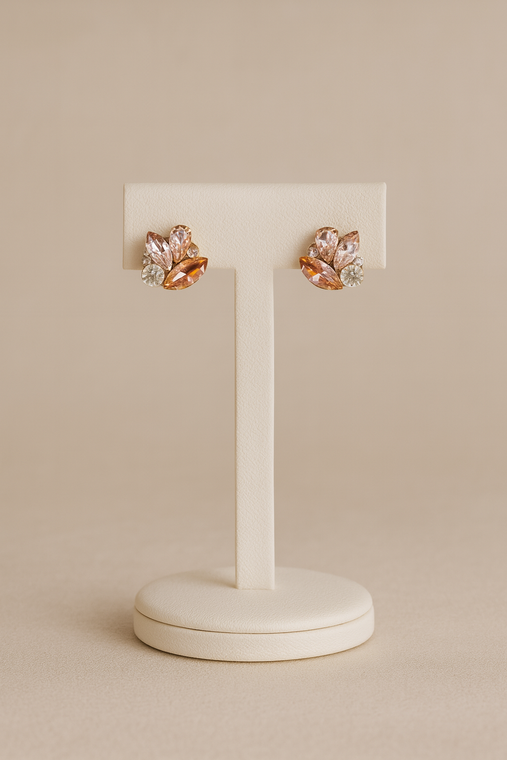Orecchini realizzati su base argentata con cristalli di vetro con incastonatura in oro; acciaio inossidabile, nichel free.